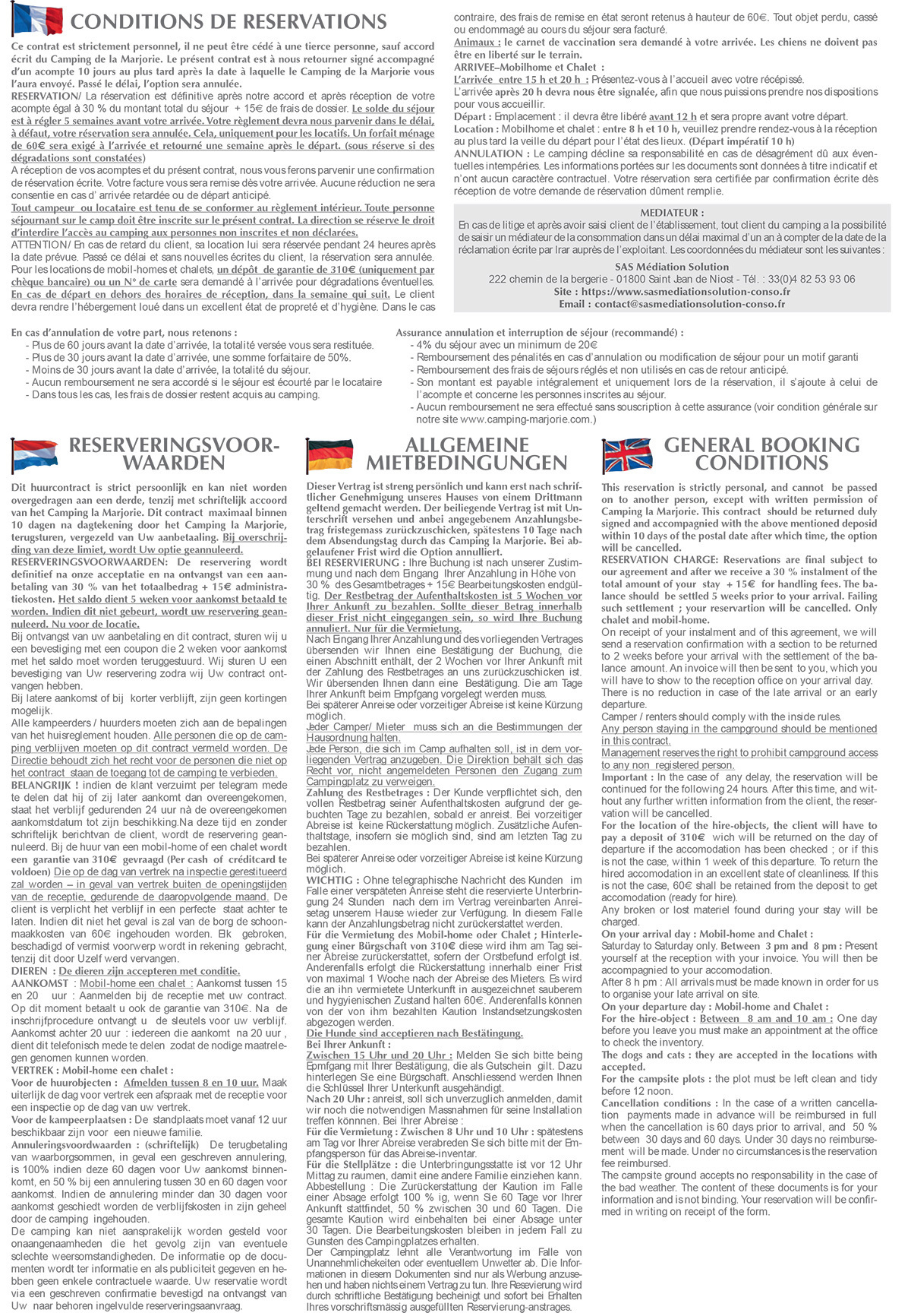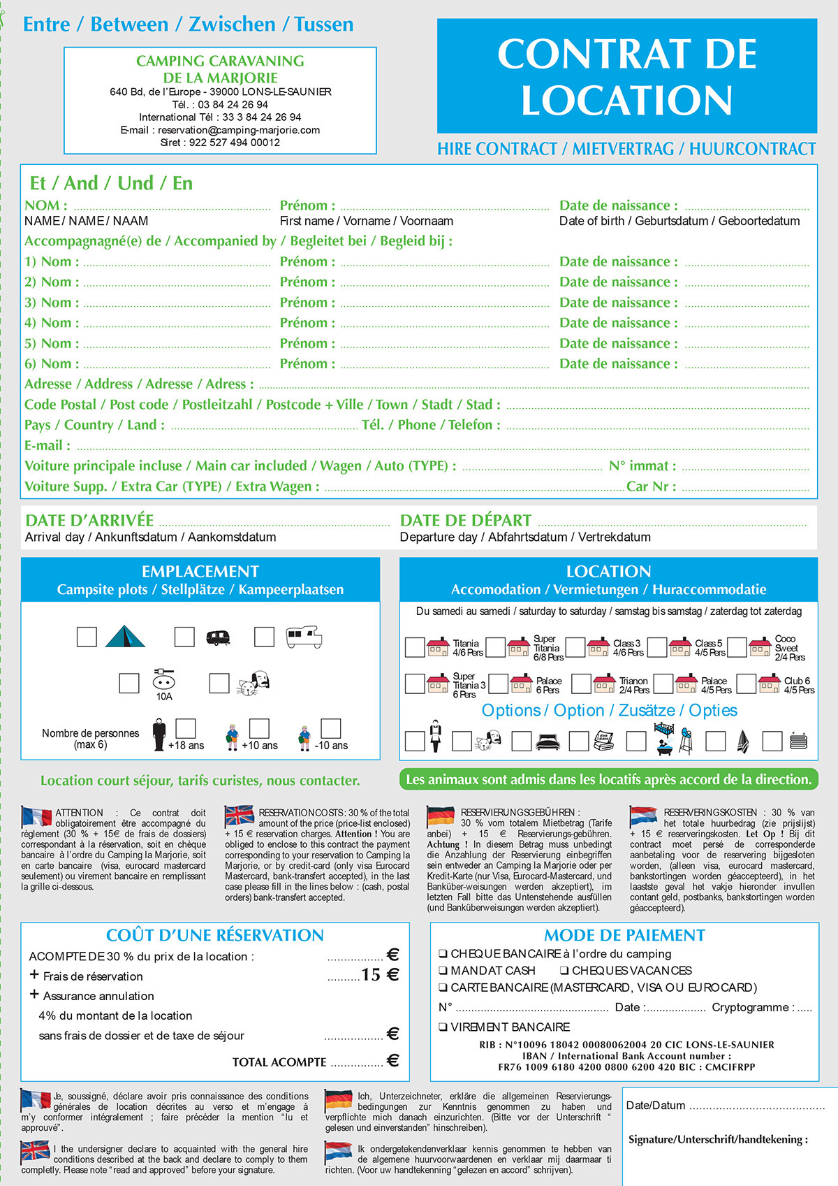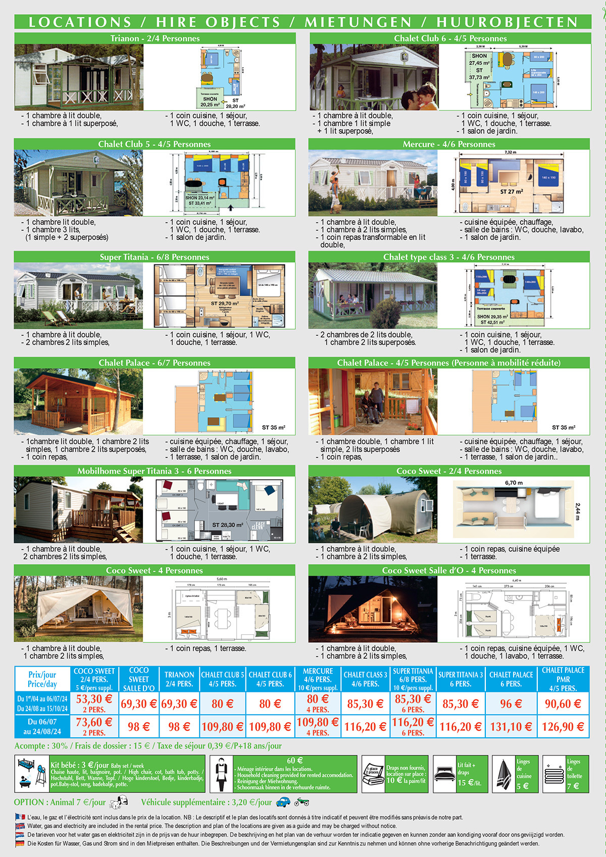 Click on the link to download the price of pitches and holiday homes, the rental contract and the booking conditions