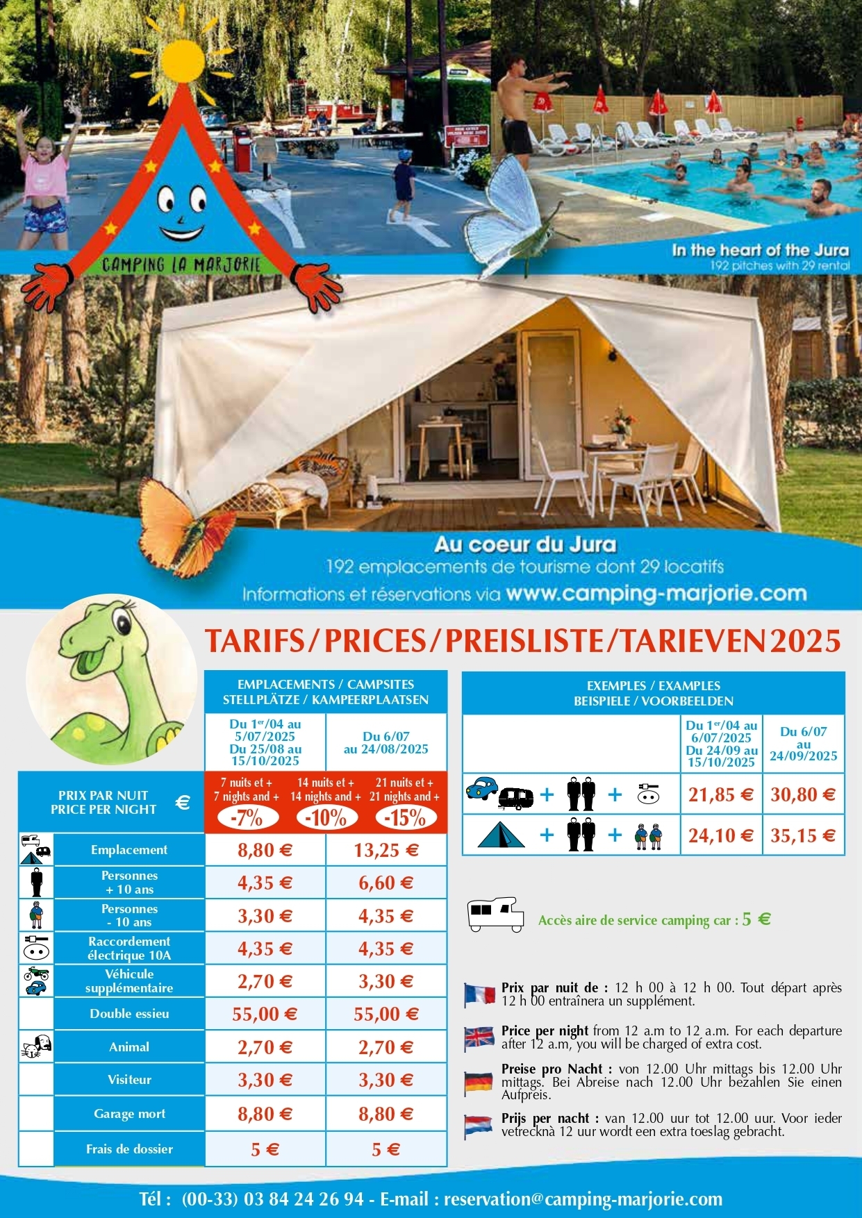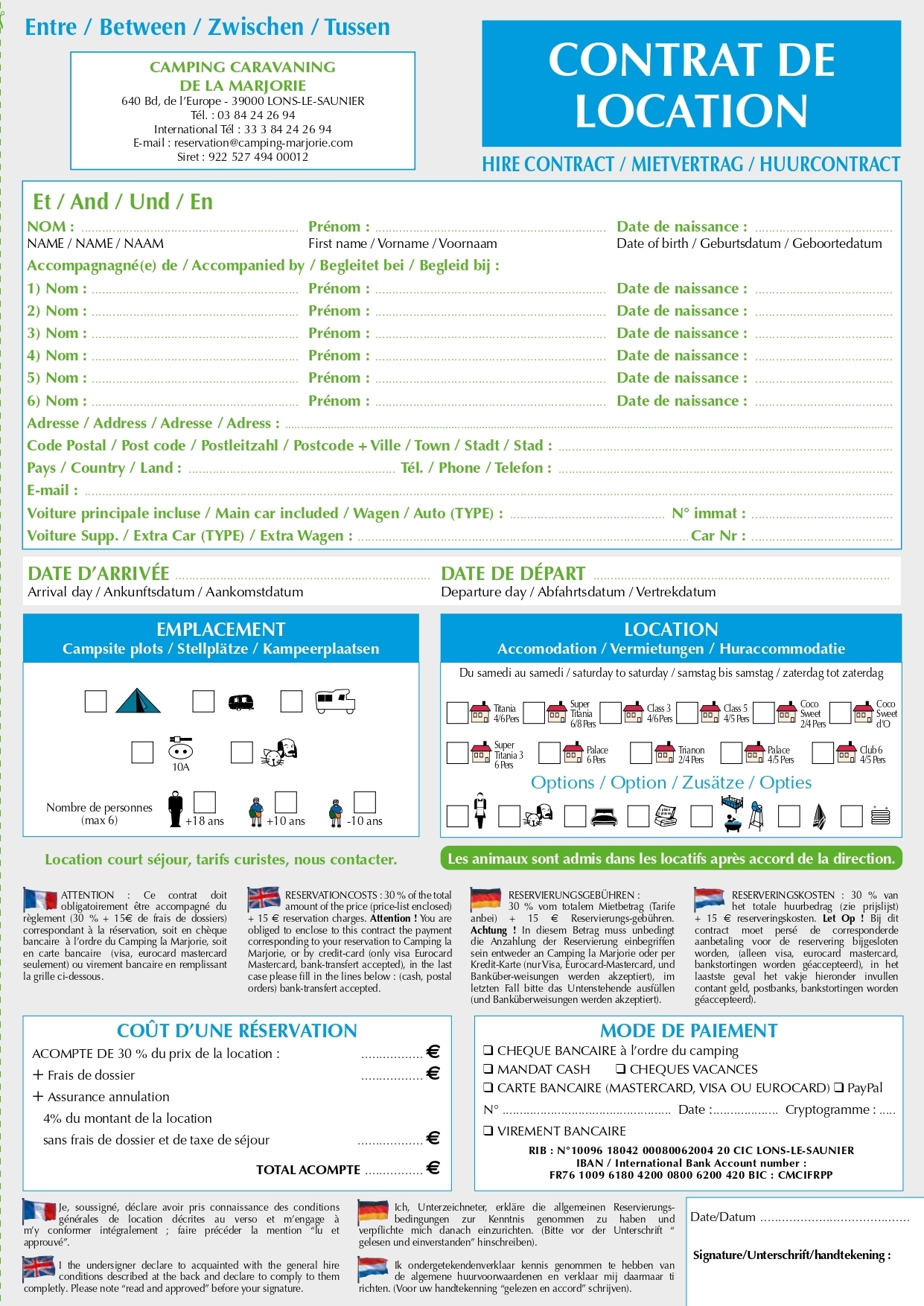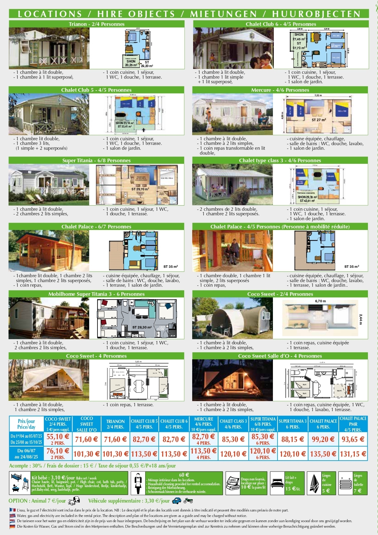 Cliquez sur les vignettes pour télécharger les tarifs des emplacements, des locations, le contrat de location ainsi que les conditions de réservation.
